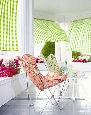 I love everything! Now you've inspired me with photo #1...I've got a little front porch and during the hottest Summer days it just too sunny to sit there...but I'm gonna make some curtains perhaps Roman shades to roll up and down as required...