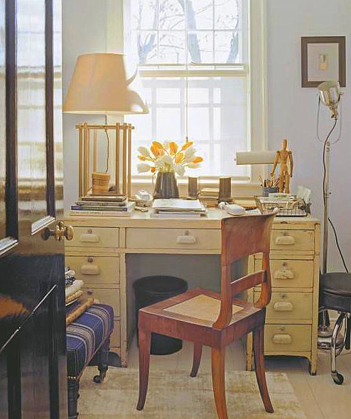 Love the soft blue desk. It floats in the room.